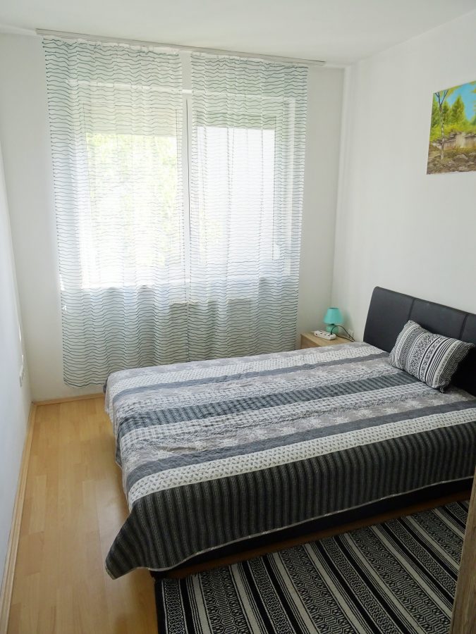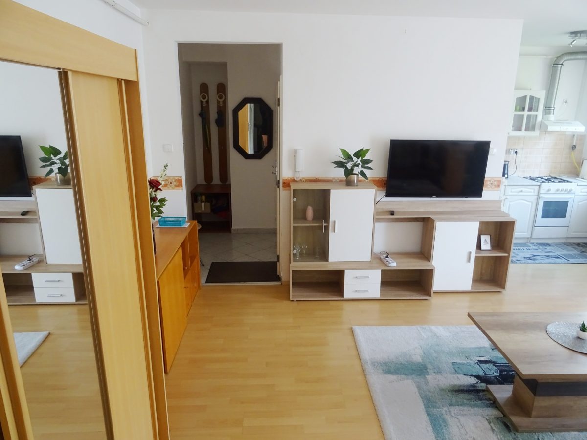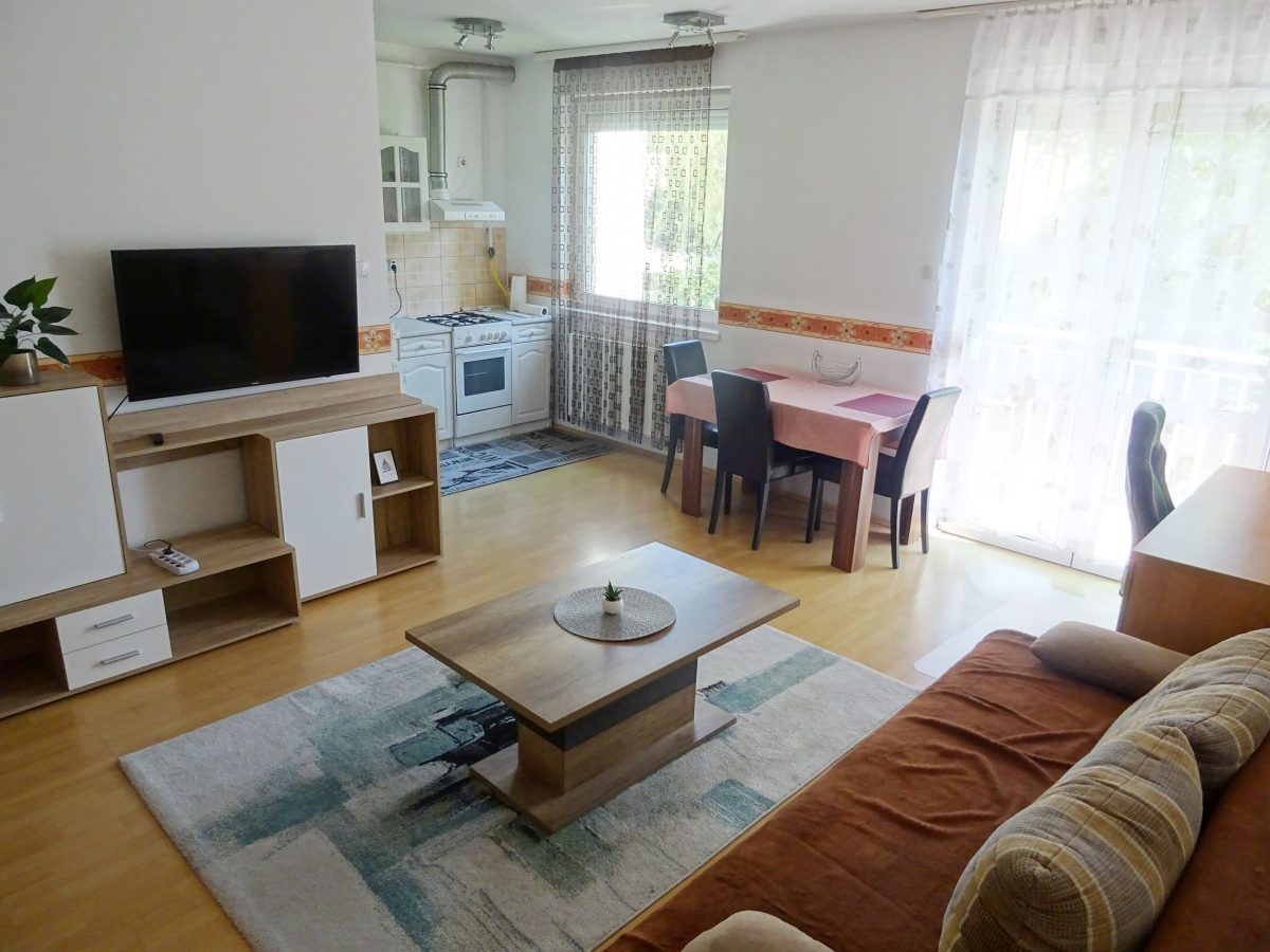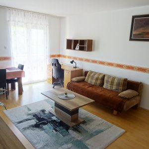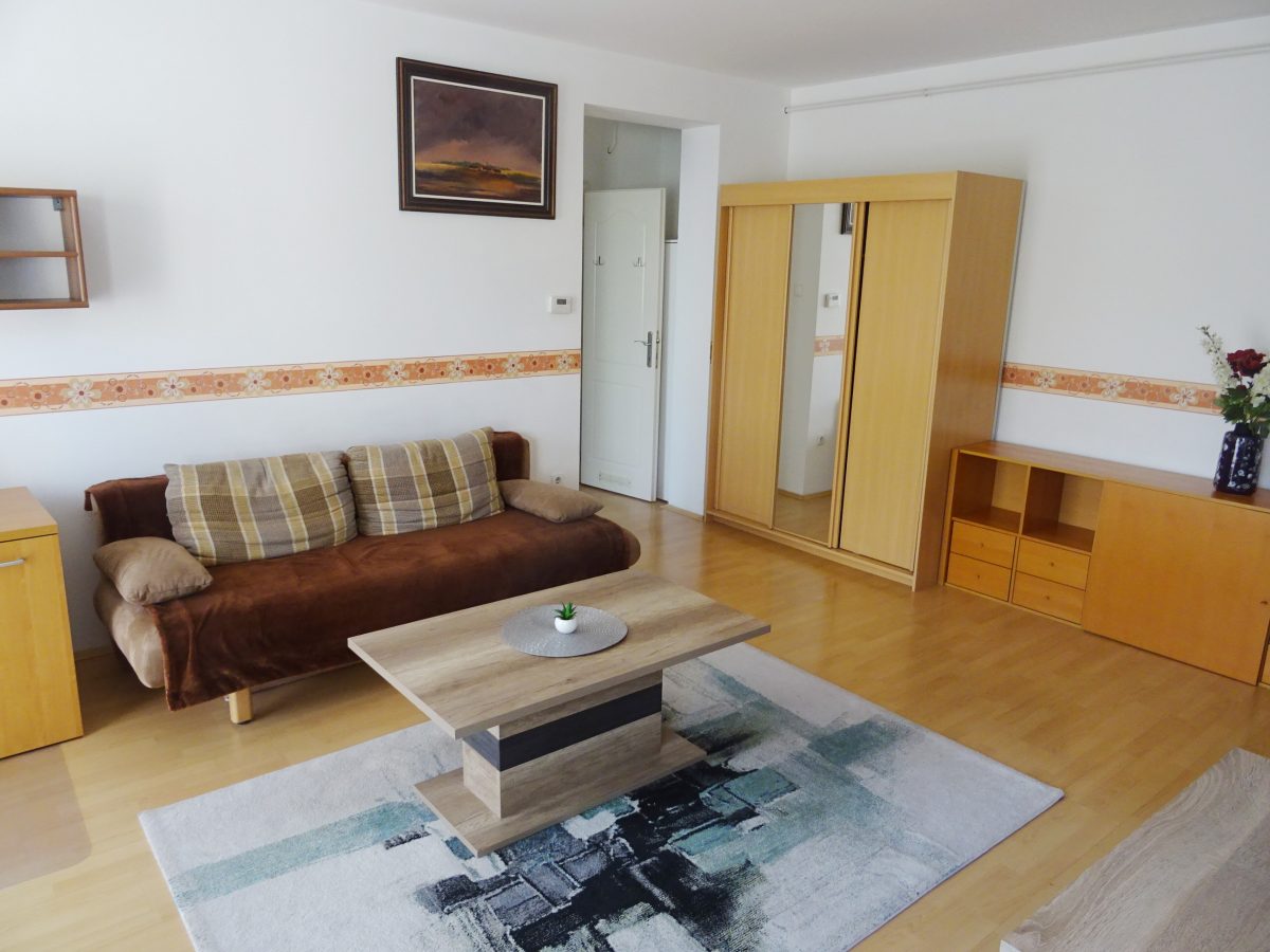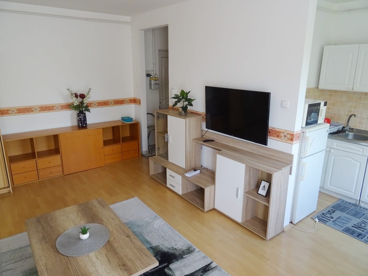 Furnished 1 Bedroom Apartment for Rent in a Quiet Area – Kétmalom Street, Debrecen A bright and comfortable 47 m² apartment is available for rent in a quiet and pleasant neighborhood of Debrecen. The apartment is fully furnished, equipped and air conditioned. Layout living room + 1 bedroom. The balcony overlooks a quiet, landscaped inner courtyard, providing a peaceful environment. Excellent location – the tram stop is only a few minutes’ walk away, so the University of Debrecen and the city center are easily accessible. The apartment has low utility costs and individual heating. Deposit: two months’ rent.