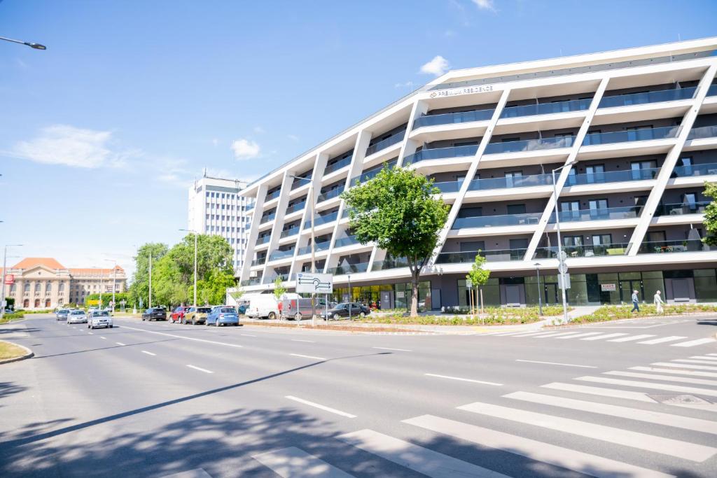 A Debreceni Egyetem közvetlen közelében, az újonnan épült PREMIUM RESIDENCE társasházban kiadó egy 58 nm-es, vadonatúj, még nem lakott lakás, amelyhez egy tágas, 28 nm-es terasz tartozik. Az ingatlan újonnan vásárolt bútorokkal berendezett, teljesen gépesített és mindennel felszerelt, azonnal költözhető állapotban van. A lakás nappali, hálószoba, konyha, fürdőszoba, külön WC, előszoba és nagy terasz helyiségekből áll, a terasz mindkét szobából megközelíthető. A lakás háromrétegű nyílászárókkal, elektromos, automata redőnyökkel és szúnyoghálóval felszerelt. A fűtés központi rendszerű, padlófűtés és radiátor is rendelkezésre áll, egyedi hőmennyiségmérővel és szabályozható termosztáttal. A komfortérzetet két klímaberendezés, mágneses beléptető rendszer, valamint gépesített, mosogatógéppel is felszerelt konyha biztosítja. A Debreceni Egyetem főépülete mindössze körülbelül 100 méterre található, a buszmegálló közvetlenül az épület előtt helyezkedik el. A bérleti díj 400.000 Ft havonta. A lakáshoz teremgarázs beálló is tartozik, amely havi 30.000 Ft ellenében bérelhető. Az ingatlan azonnal költözhető, ideális választás igényes bérlők számára, akik modern, prémium környezetben szeretnének élni kiváló elhelyezkedéssel.